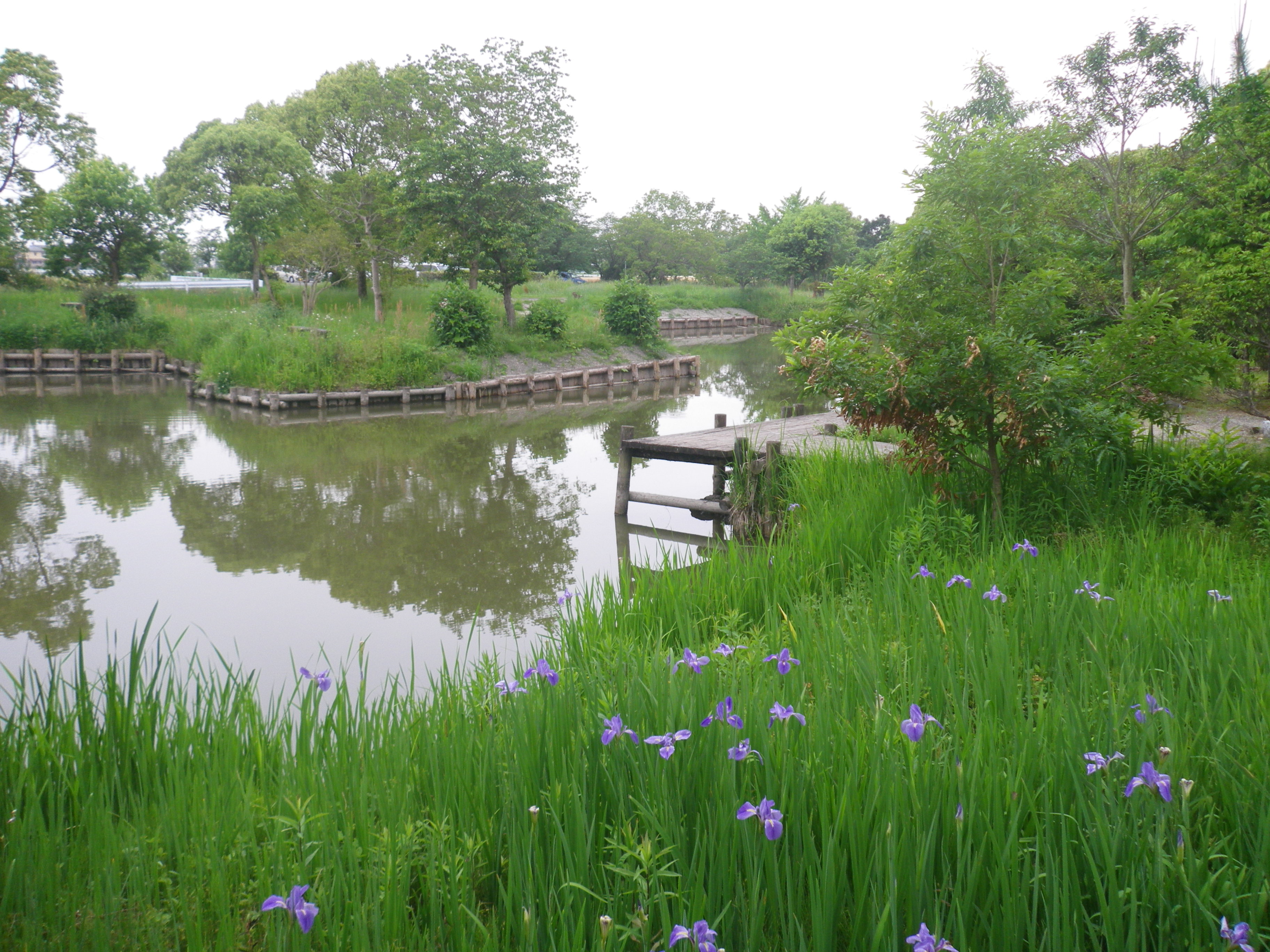 ブラックバスの釣りを楽しまれている方もいらっしゃいました。また、この季節しょうぶの花もきれいに咲いていましたよ。