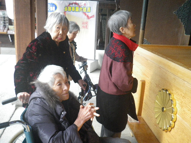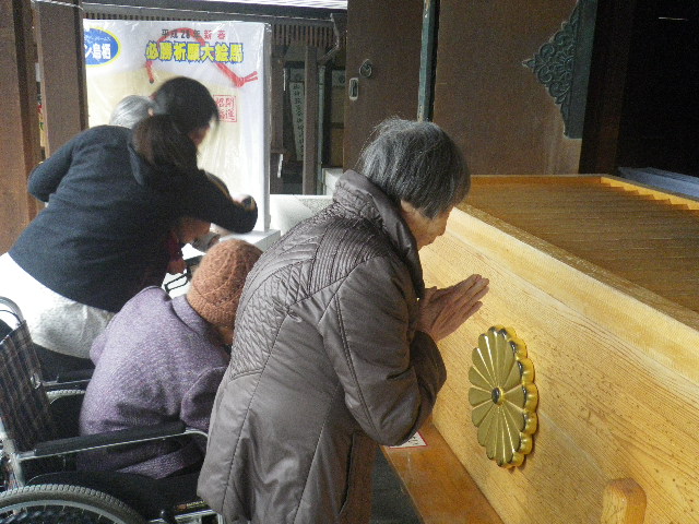 西与賀の入居者様もお賽銭を投げ込まれ手を合わせていらっしゃいました。