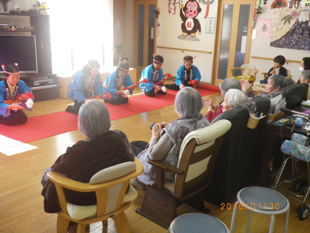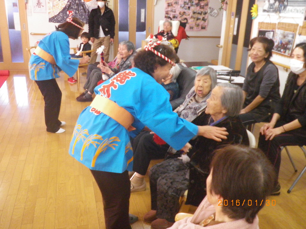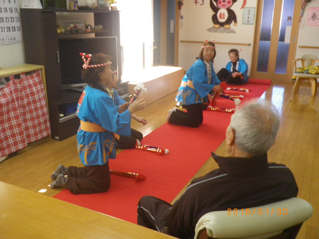 昔、「銭太鼓」をしていたという入居者様もおられ、地元も一緒の方に偶然お会いになり、「元気やったね」と懐かしむ場