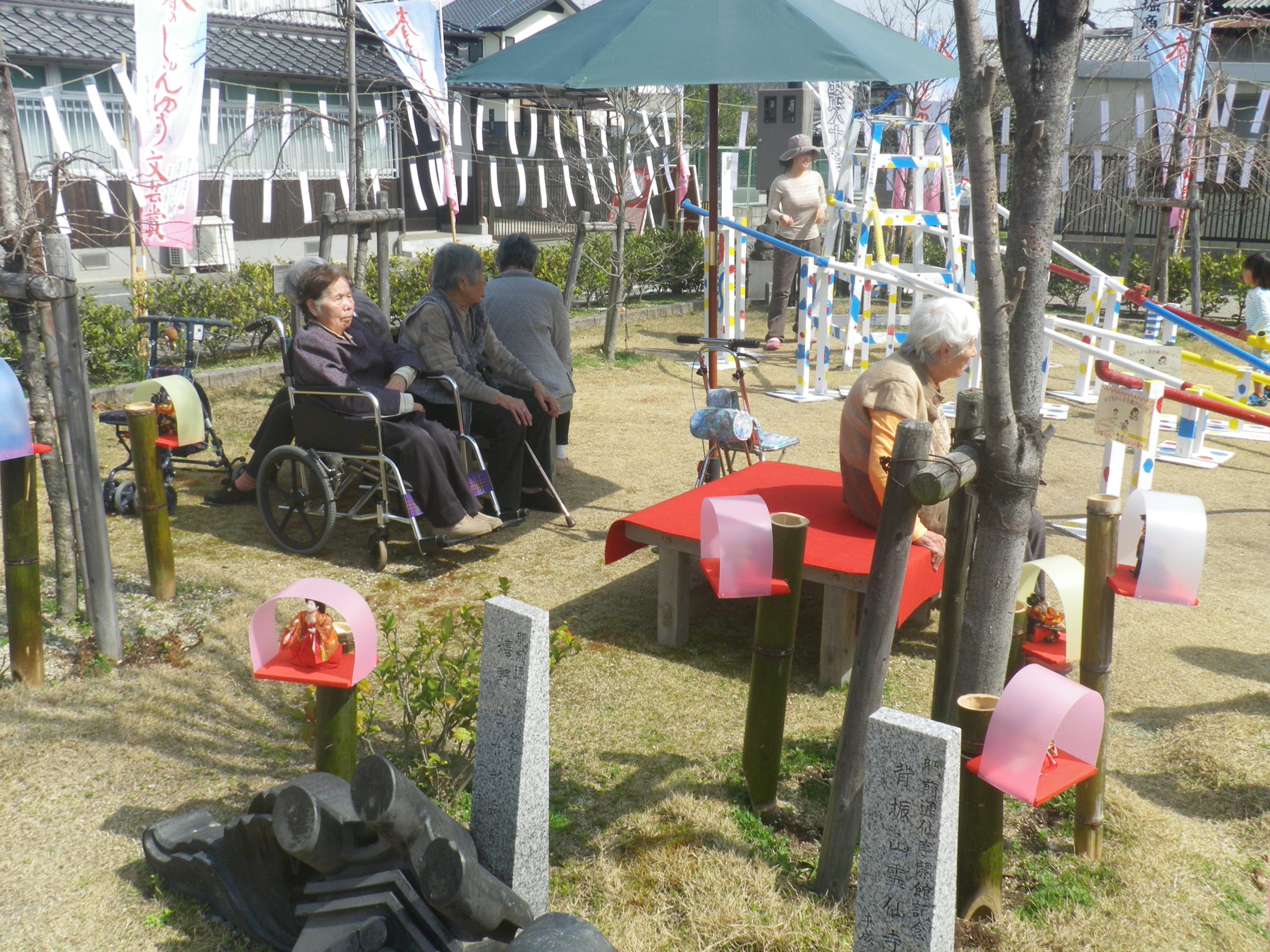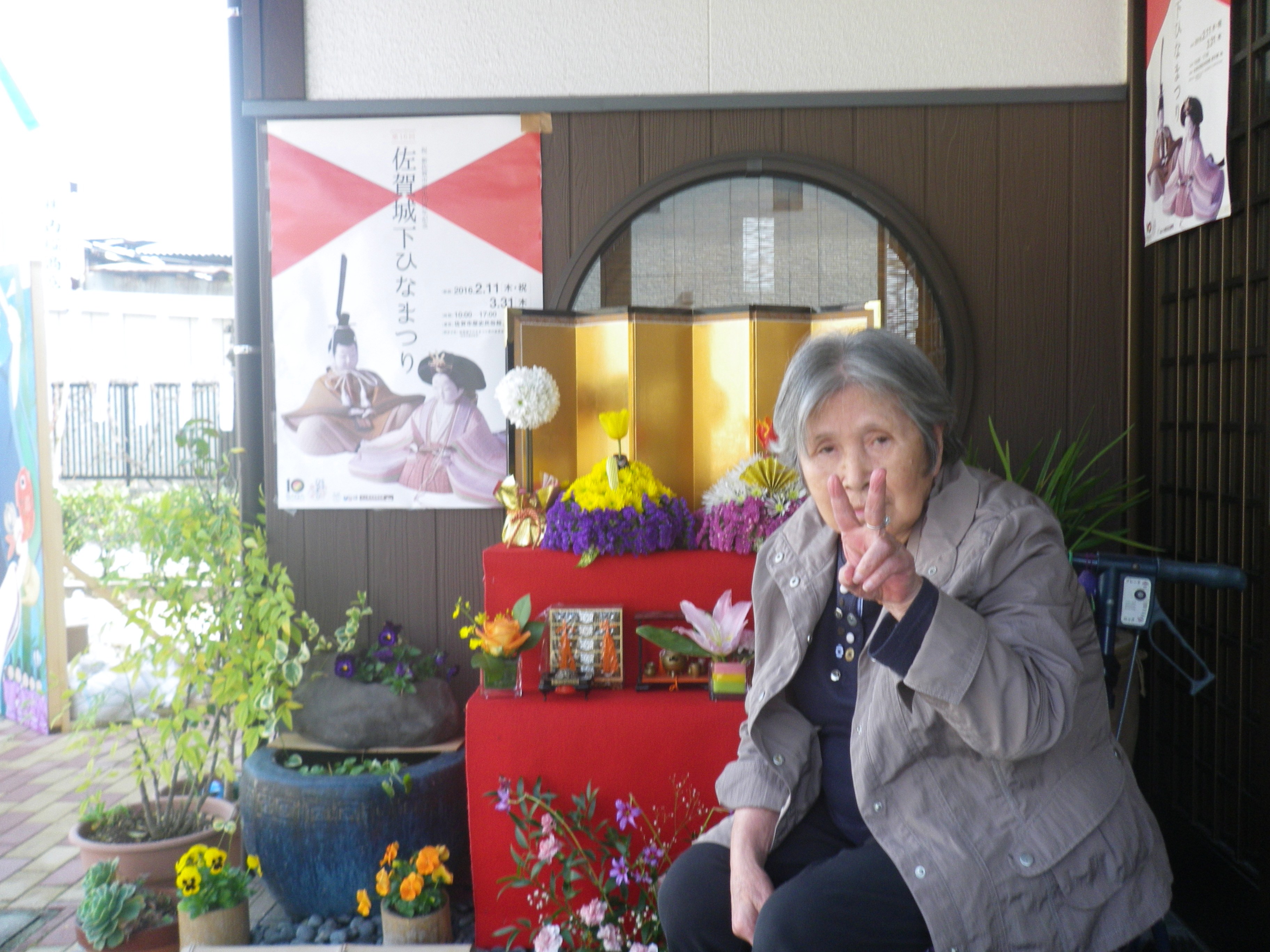 施設の入り口では、生花でつくられたお雛飾りがお出迎えしてくれました!(^^)!