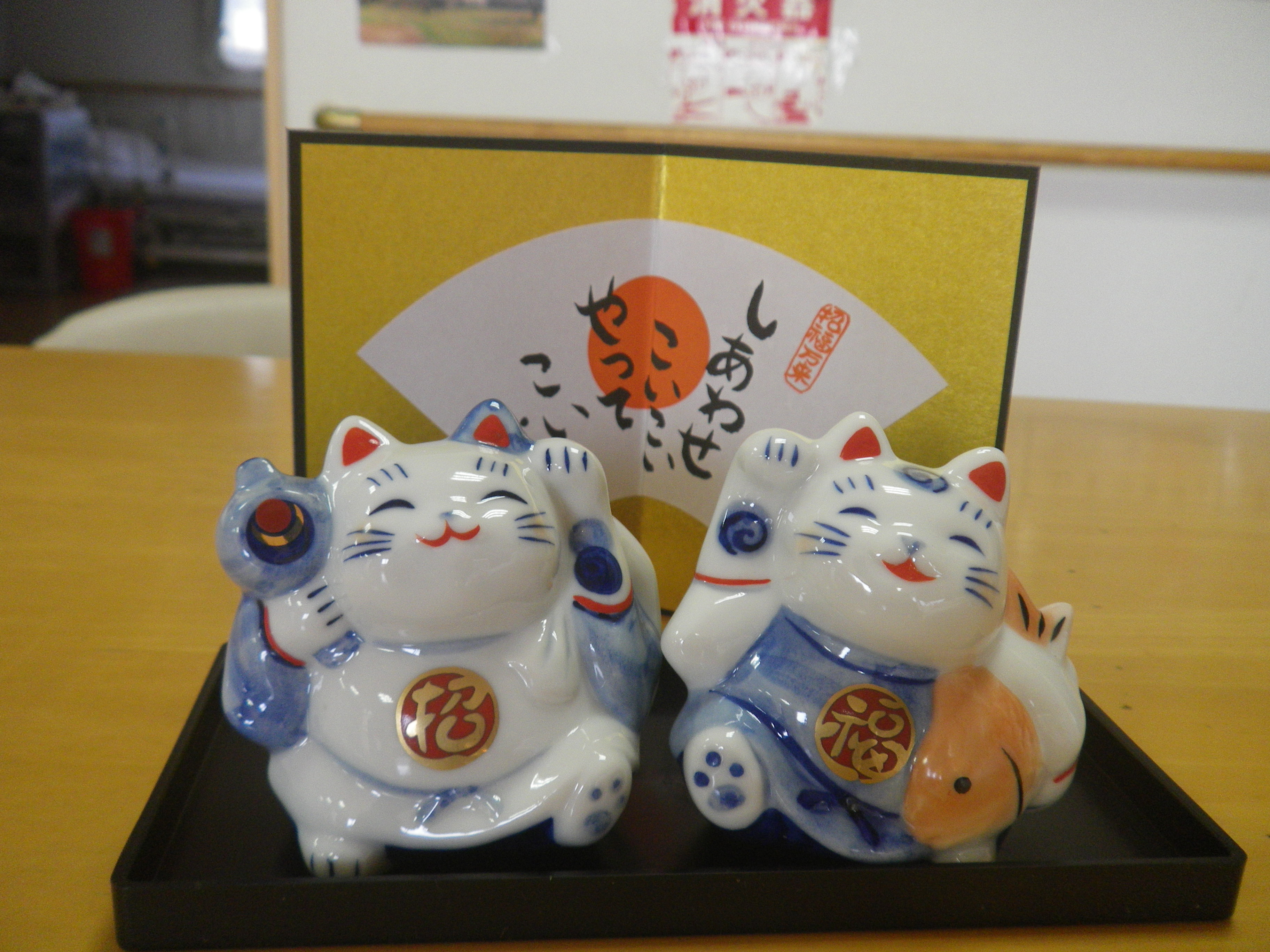 帰りには地場産地販売コーナーでおやつにと、「かすまき」「ゆりの花」を購入。また、置物の招きねこの雛飾りを購入しましたよ。