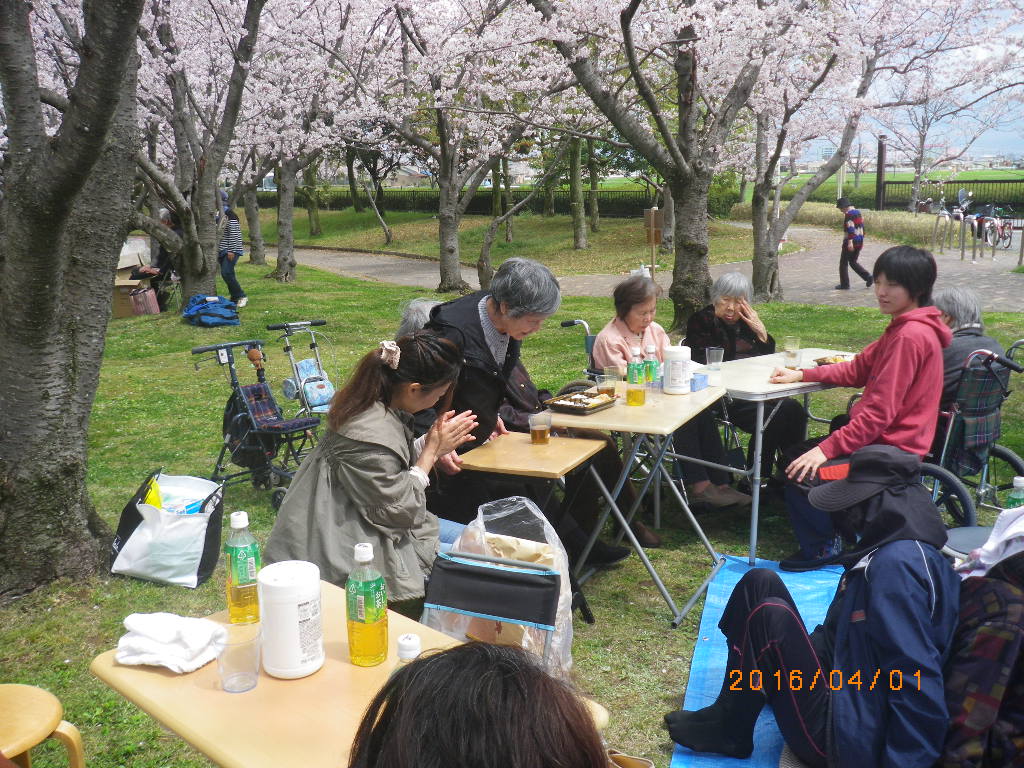 3施設の入居者様とスタッフ総勢42名で楽しいお花見ができました。