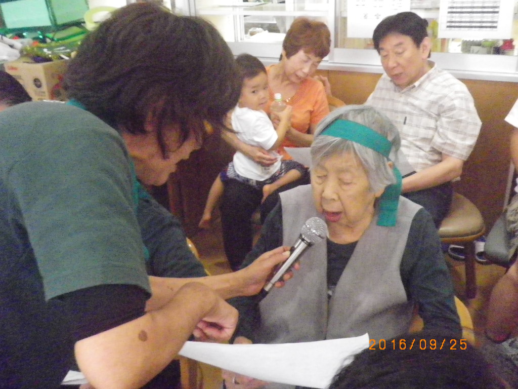 立野の歌が大好きな入居者様。特に「水森かおり」の曲を大得意とされているということで自ら「東尋坊」を選曲され独唱されました。