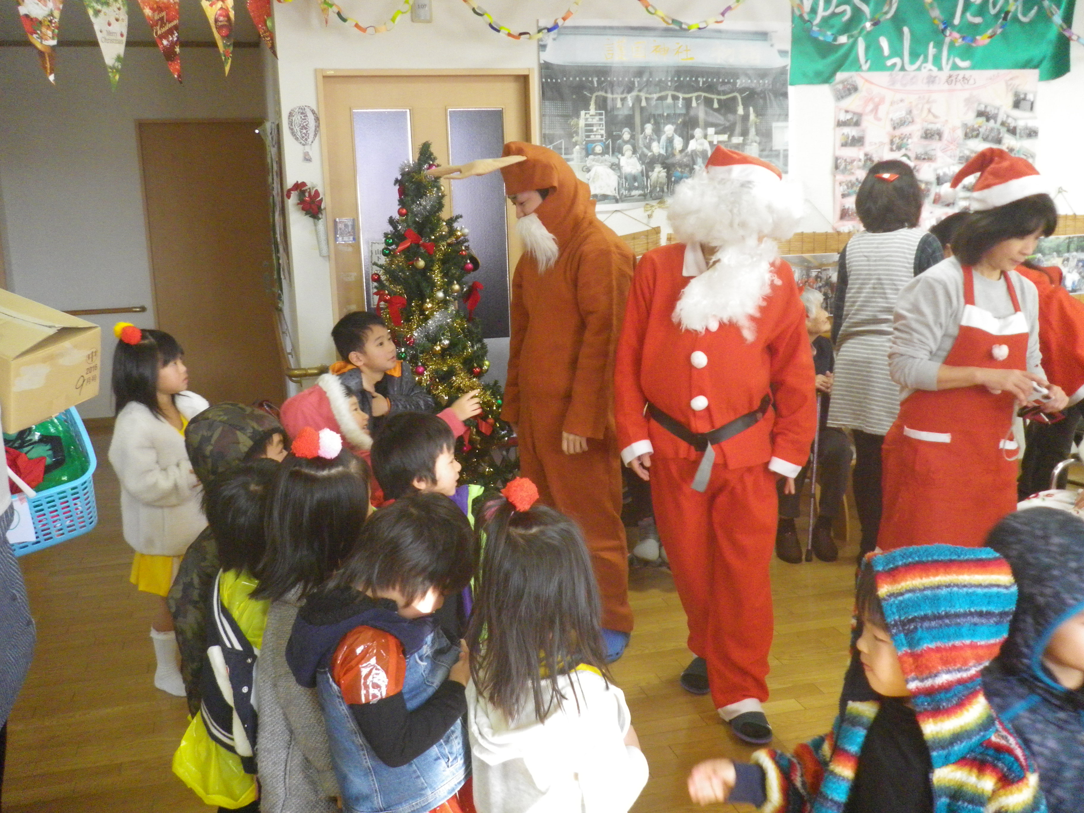 さて、今日は3施設合同のクリスマス会&忘年会を開催