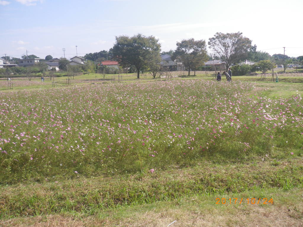 先日 コスモス祭りがあったようで、満開のコスモス畑を観る事ができました。台風の影響でなぎ倒されている花もありましたが・・・