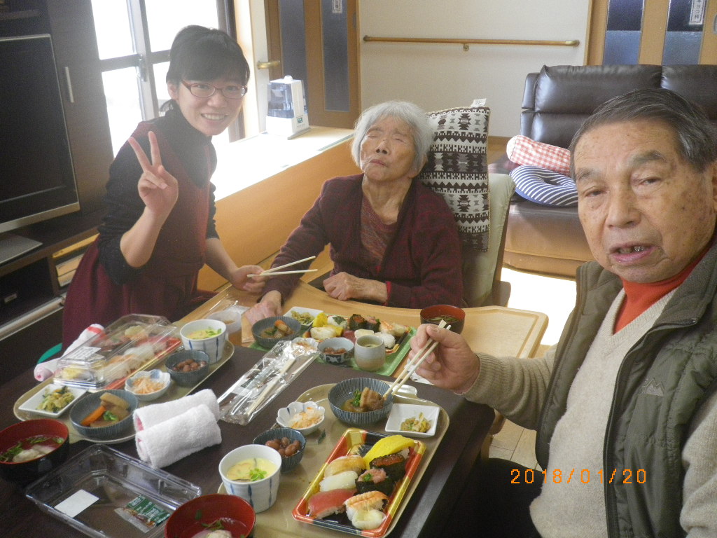 さて、今日は第54回の運営推進会議を開催 毎年1月の運営推進会議は新年会を兼ねてご家族様とお食事会を行っております。
