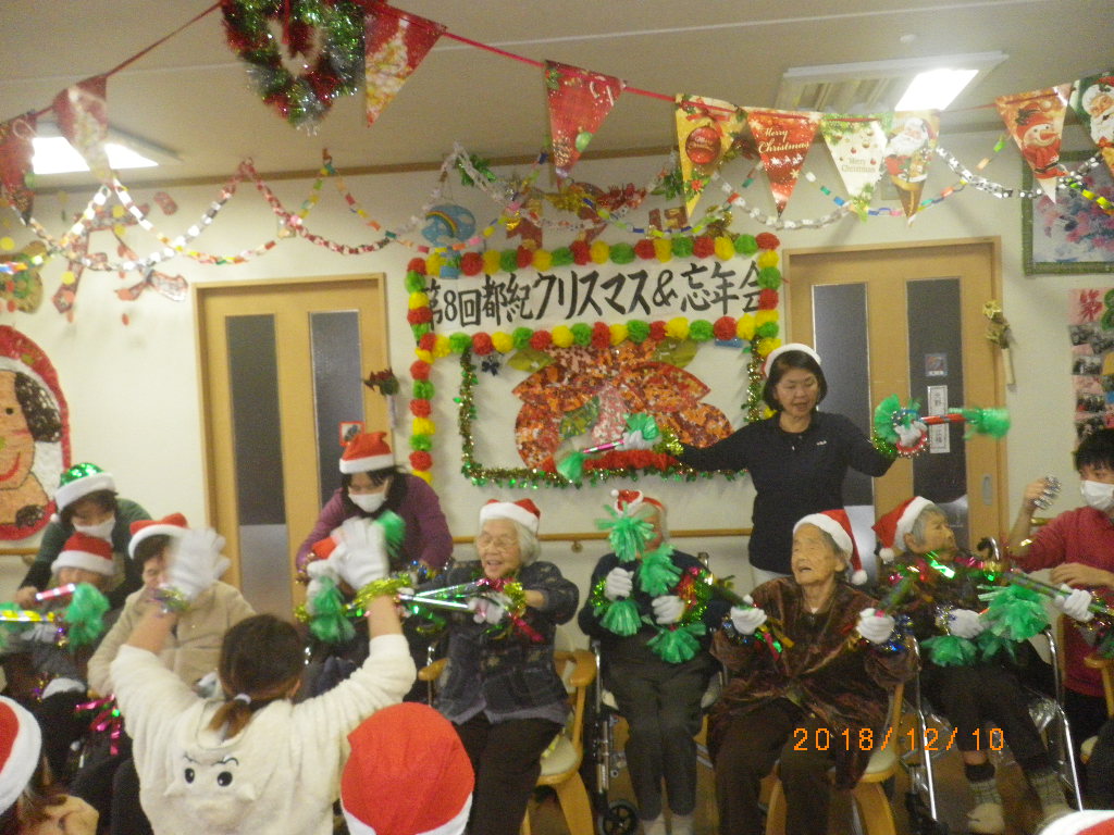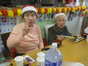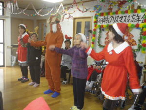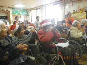さて、今日は、3施設合同のクリスマス会&忘年会を開催 各苑全員の入居者様27名参加
