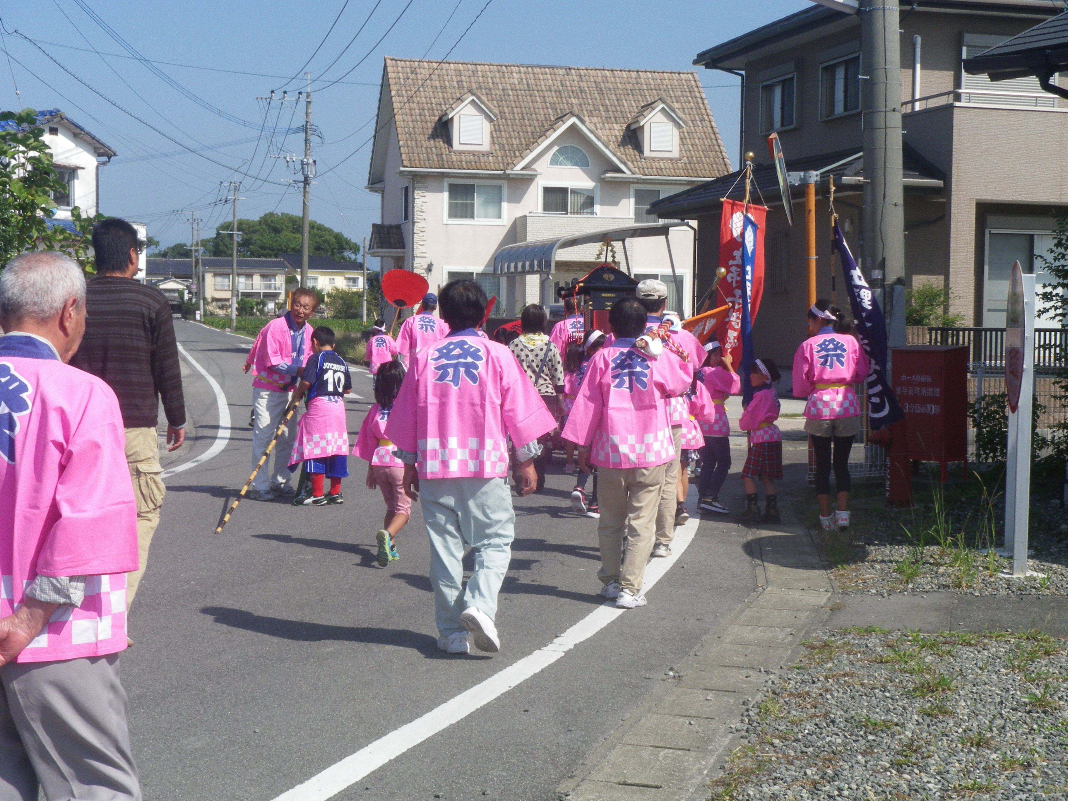 10月14日立野地区のお祭りが行われ、かわいい子どもみこしがやってきました。