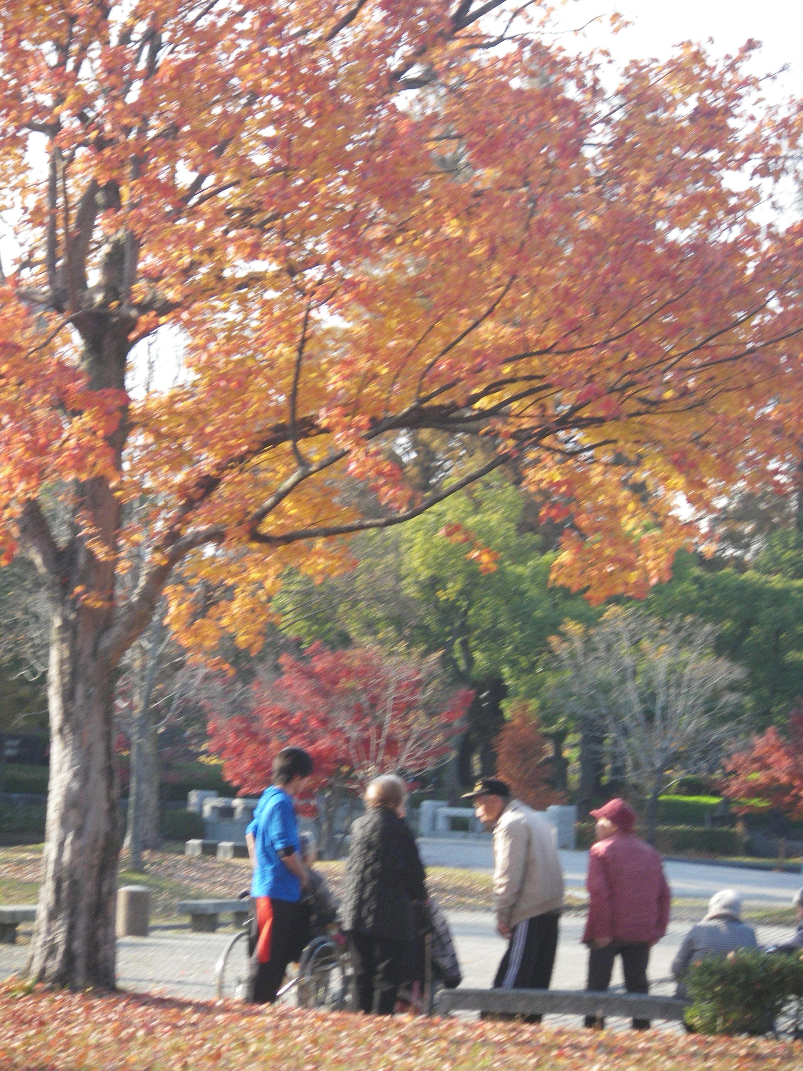 12月5日 ぽかぽかと気持ちの良い午後、紅葉を見に県立図書館の公園へ出かけました。