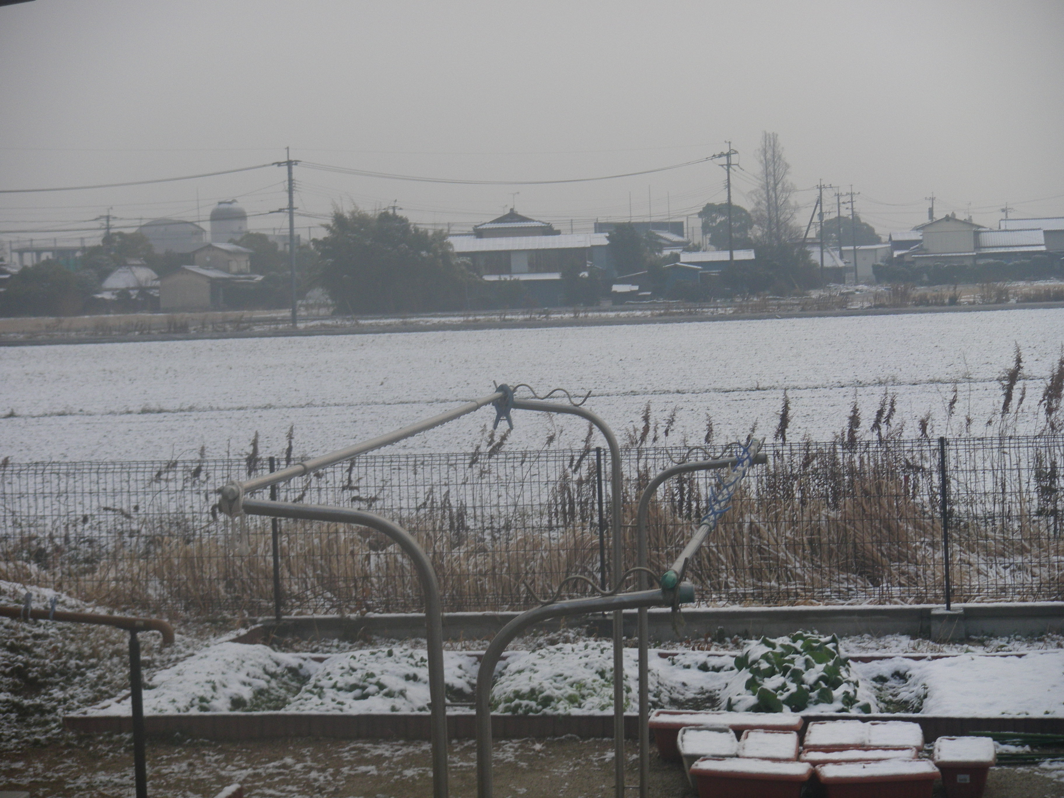 佐賀平野にも雪が積もり、西与賀紀水苑の裏庭は真っ白( ^)o(^ )