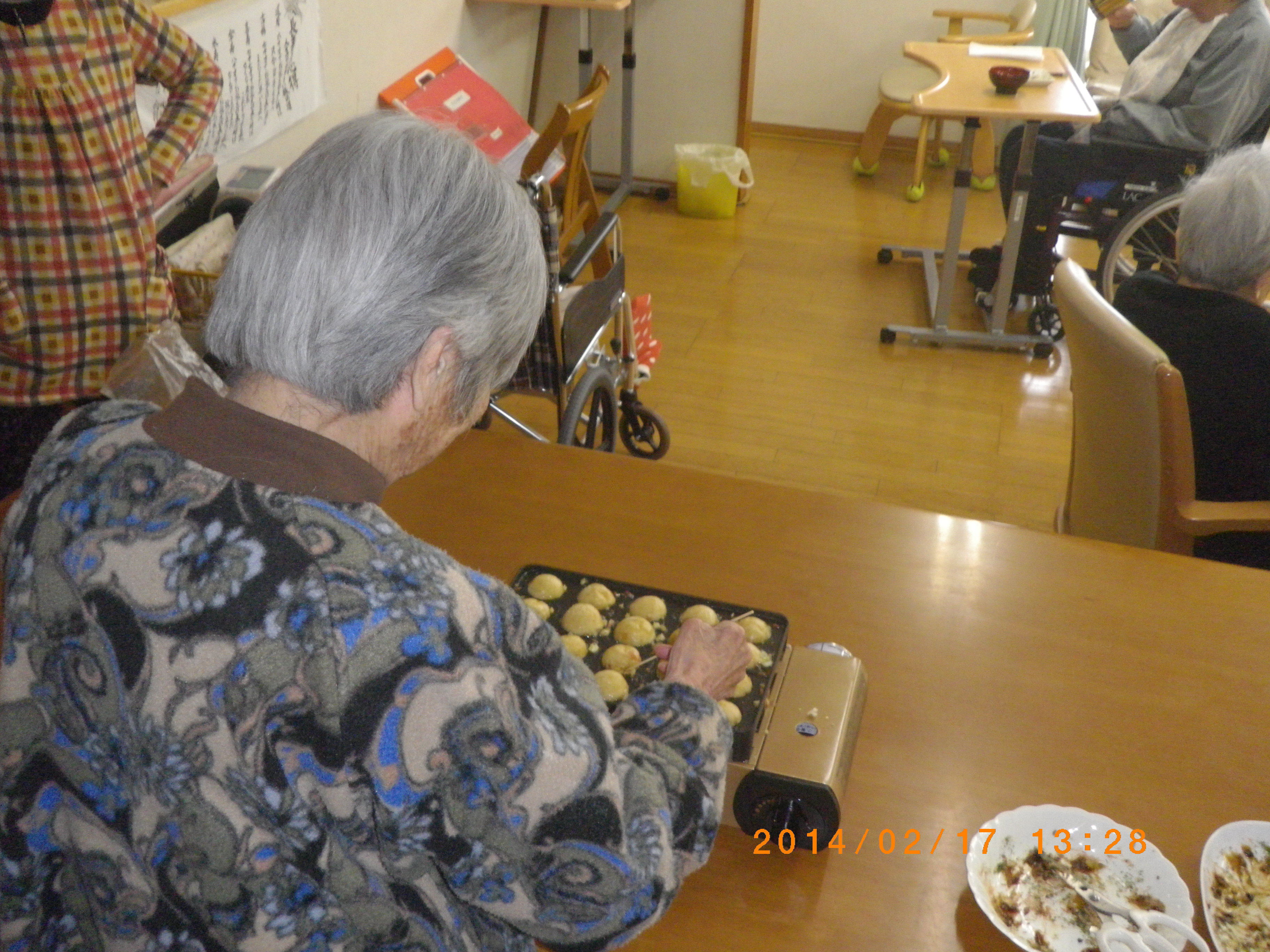 焼き手は、入居者9名分とスタッフ分、隣の立野紀水苑にもおすそ分けをし、全部で170個も焼きあげました。 😉