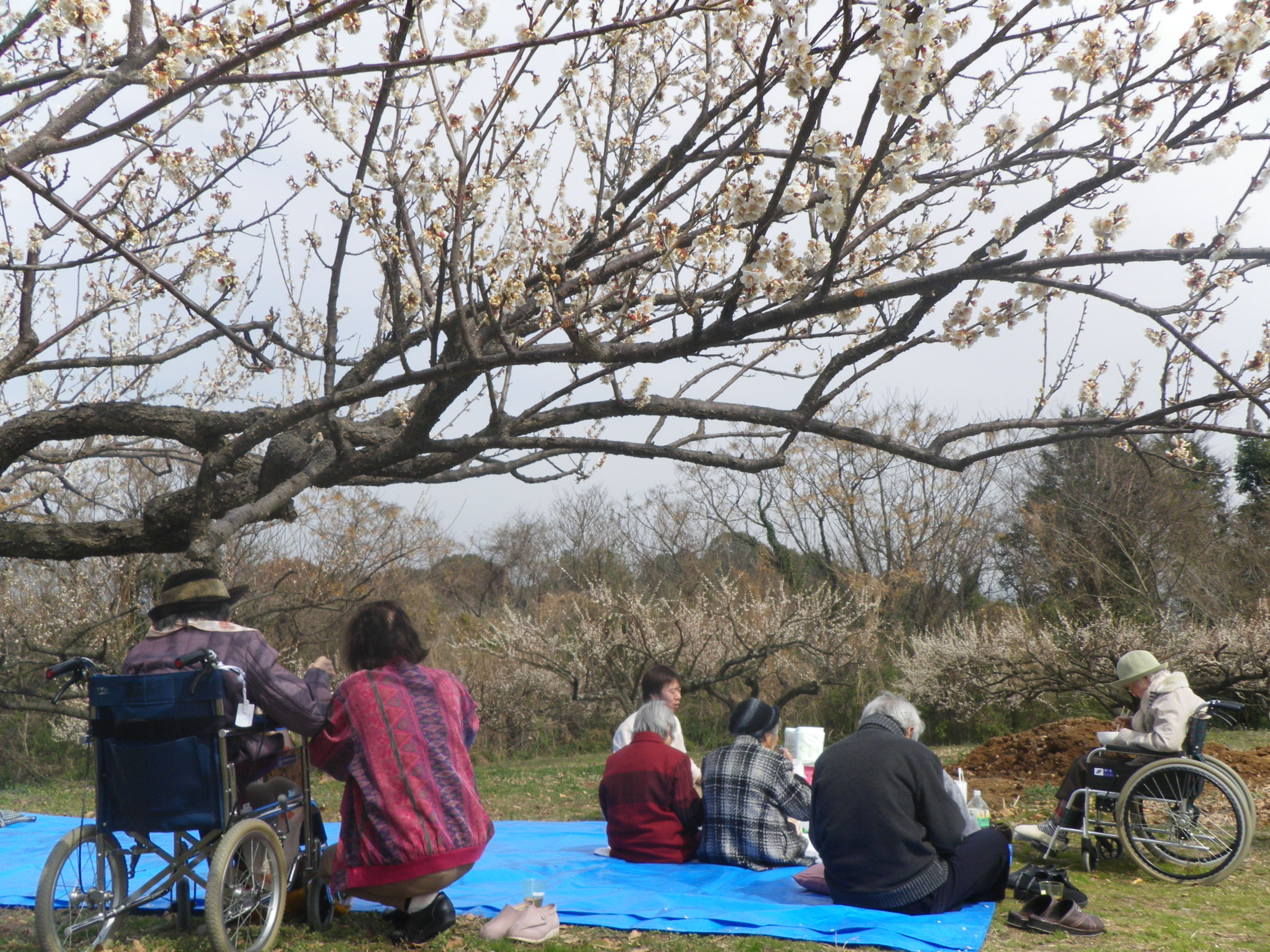 お天気も良く、花見日和で 梅の香りもちょっとする中で お弁当をひろげてみんなで食べました。