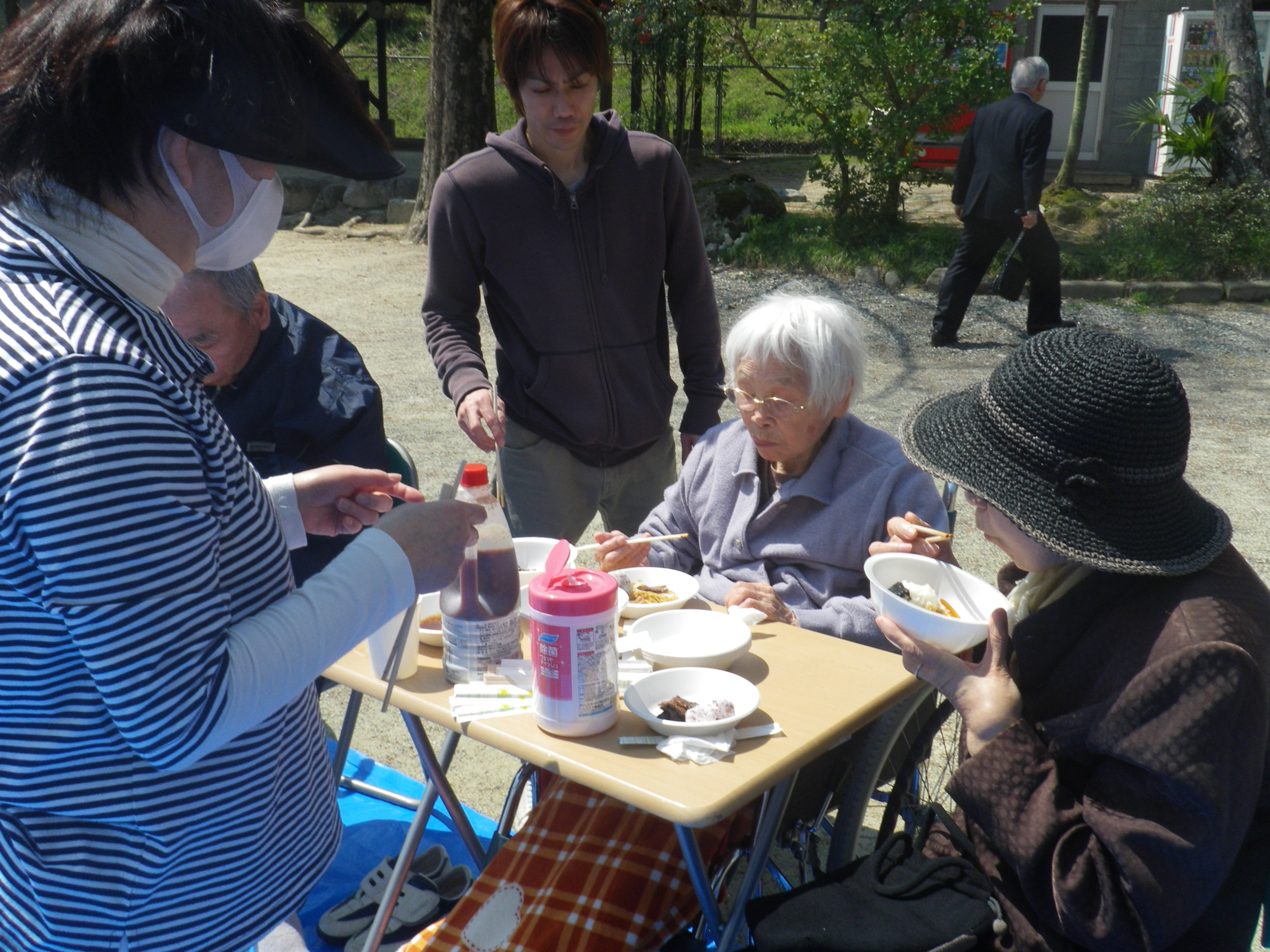 お昼は、おにぎり、焼き肉、焼きそばにシシャモを用意。