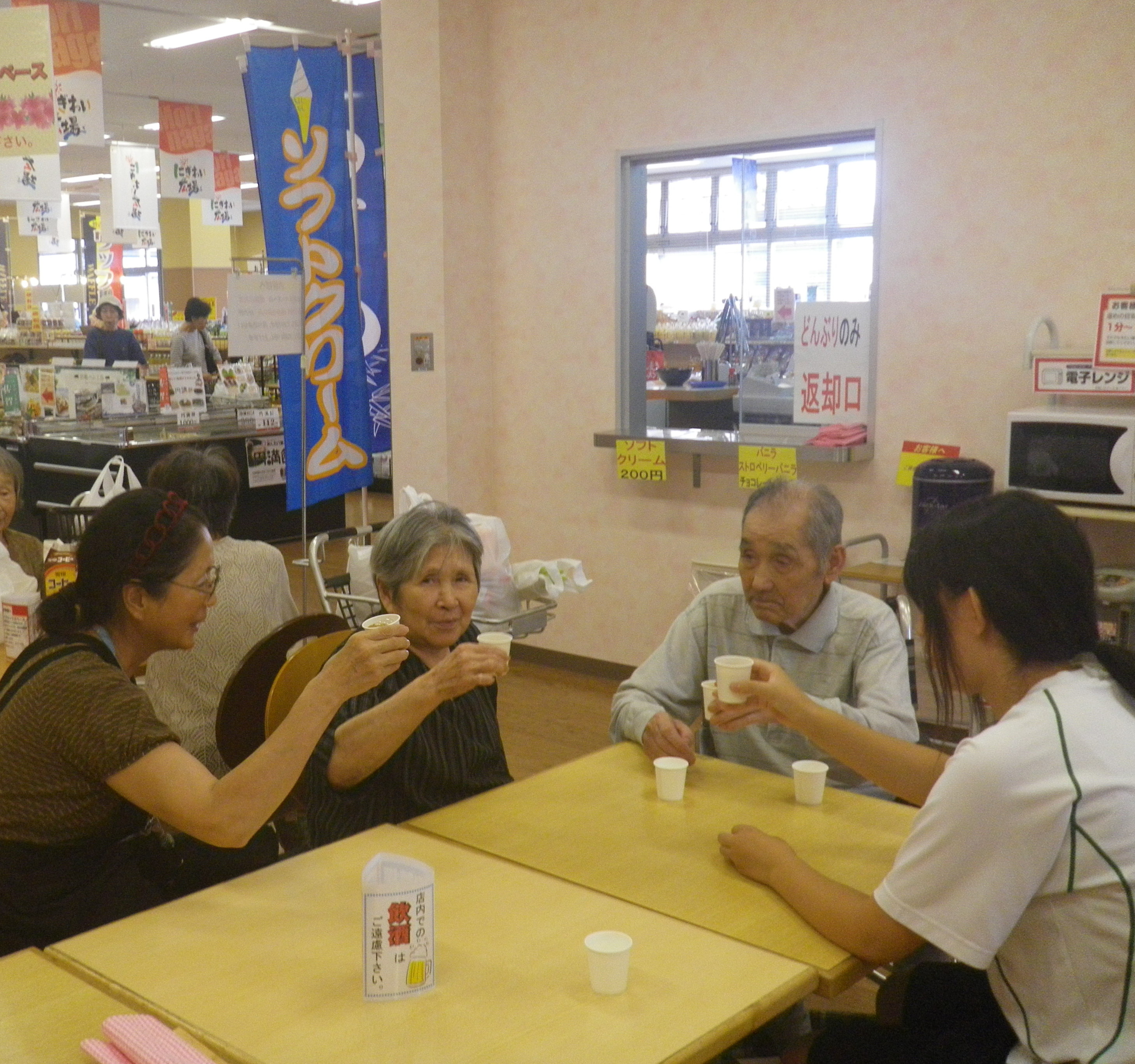日中は傾眠が多い方でもお買い物へのお誘いに「行く!行く!」と笑顔見られていました。