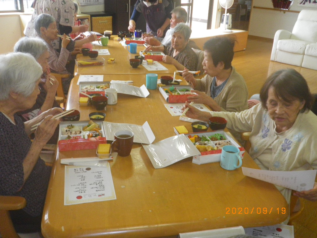 さて、本日は敬老会として各苑でお弁当を召し上がって頂きました。